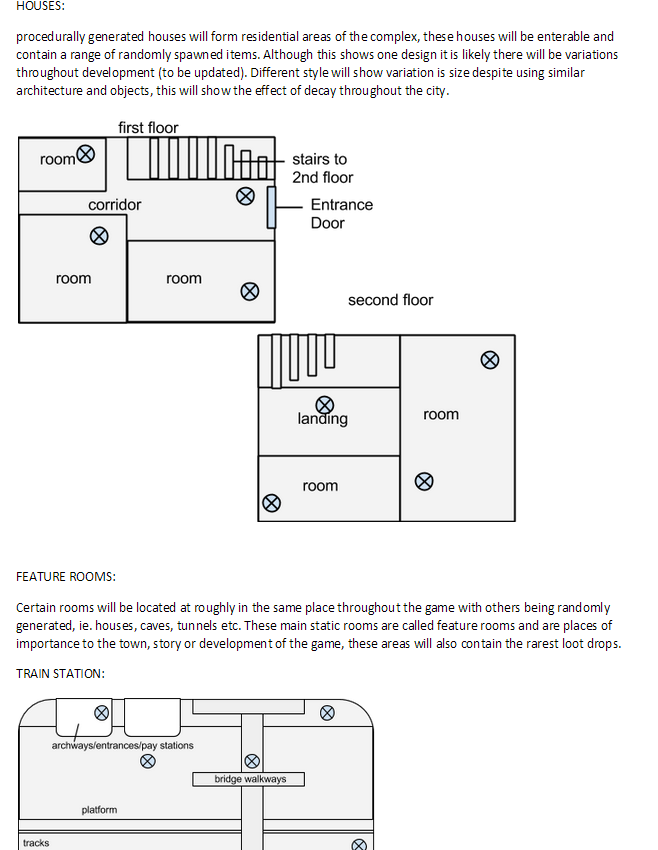 screenshot of level(map) design document, describing randomly generated traps and item drops and layouts.